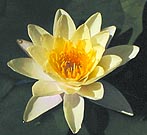 Charlene Strawn is a hearty grower with flowers that truly shine. The flowers tend to sit above the water line from 1 to 6 inches tall. This yellow water lily blooms well and is a very good start for a new gardener. It can grow in full sun but can also tolerate heavy shade. |