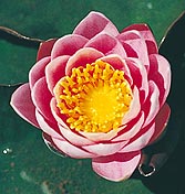 Note the difference in this flower. The rounded petals and the true color on the perfectly formed flower makes this plant striking. A good bloomer with nice emerald green leaves makes Eugene de Land an interesting addition to the collector water garden. As the name would suggest, it to is a Latour Marliac hybrid and one of Mr. Marliac's favorites. Flower size can be up to 7 or 8 inches in diameter, slightly and pleasantly fragrant. Adaptable to medium and large ponds.